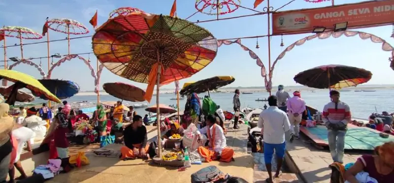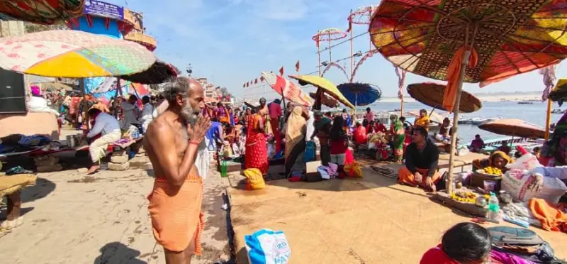 কালের গণ্ডি পেরোনো ঘাট নয়, ওগুলোতে যে অন্য আরেকটি ভারতবর্ষের গল্প লুকিয়ে আছে ।প্রায় প্রতিটি রাজ্যের জনসমাগম ঘটেছে এখানে। নিজও নিজও বৈশিষ্ট্য ও রীতি অনুযায়ী ক্রিয়া সম্পাদন তো চলছেই, আবার নিছক ভ্রমণের আনন্দেও মেতে রয়েছে তারা। তাদের বিচিত্র বর্ণের ও বিভিন্ন ধরনের পোশাক, সমগ্র ঘাটকে অত্যন্ত বর্ণময় করে তুলেছে। একটু এগিয়ে যেতেই আমার ভুল ভাঙলো। না: !